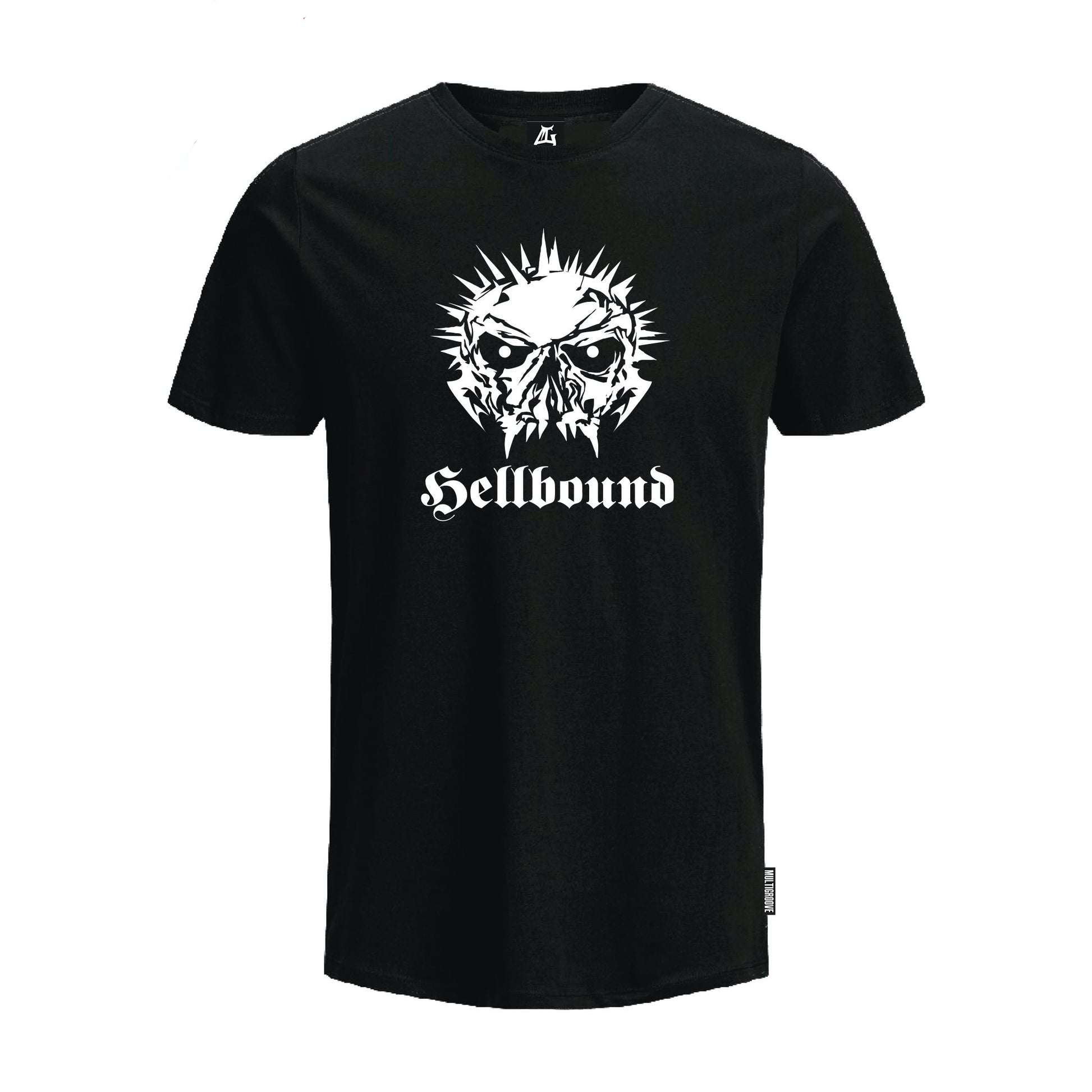 Basic zwart t-shirt met het Hellbound logo groot in het wit.