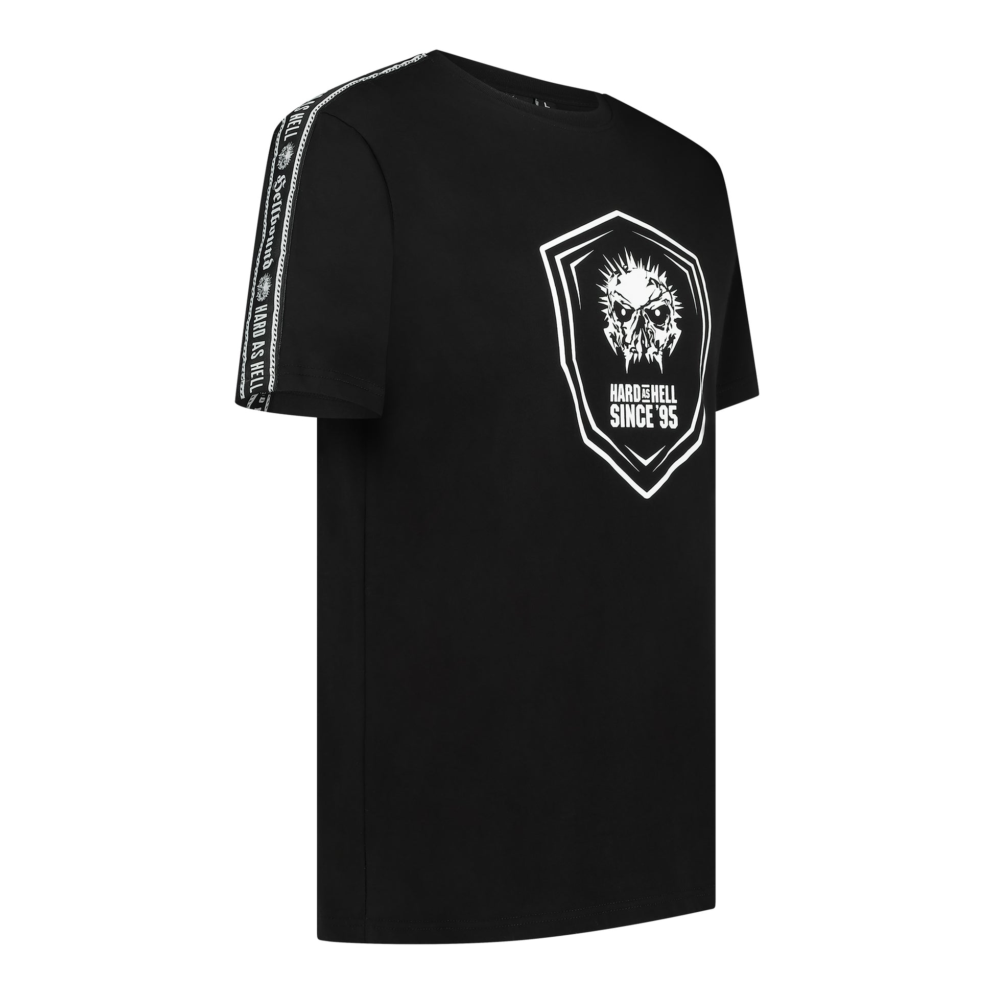 Verklaar je trouw aan de hardste geluiden met ons "Hard As Hell" T-shirt. Logo op de voorkant, statement op de achterkant en schouderversiering – dit is niet zomaar een shirt, het is een hardcore manifest. Draag het en laat de wereld weten: je bent gemaakt voor de waanzin.