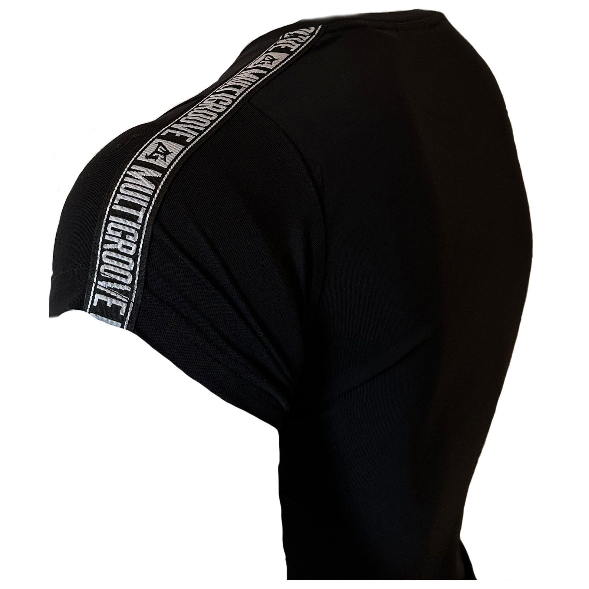 Deze zwarte 'Delicate Sound of Thunder'-tee is alles behalve delicaat. Rekbaar katoen voor maximale bewegingsvrijheid op de dansvloer, strakke pasvorm om je rave-geslepen silhouet te laten zien. Luxe zwarte rand met witte borduursels op de schouders, want details zijn belangrijk als je de donder brengt.